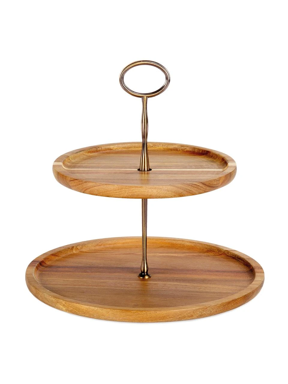 Andrea House Silberne Pizzaschneider und Heber Belli mit Akazienholzgriff, 2er-Set, B 32 x H 4 cm