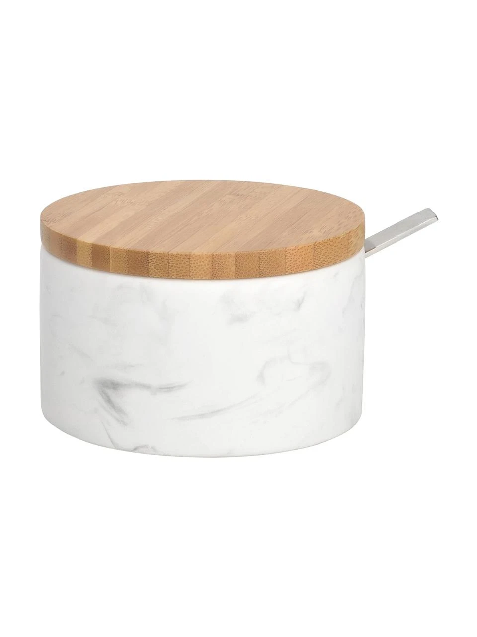 Zuckerdose in Marmor-Optik mit abnehmbarem Deckel und Löffel