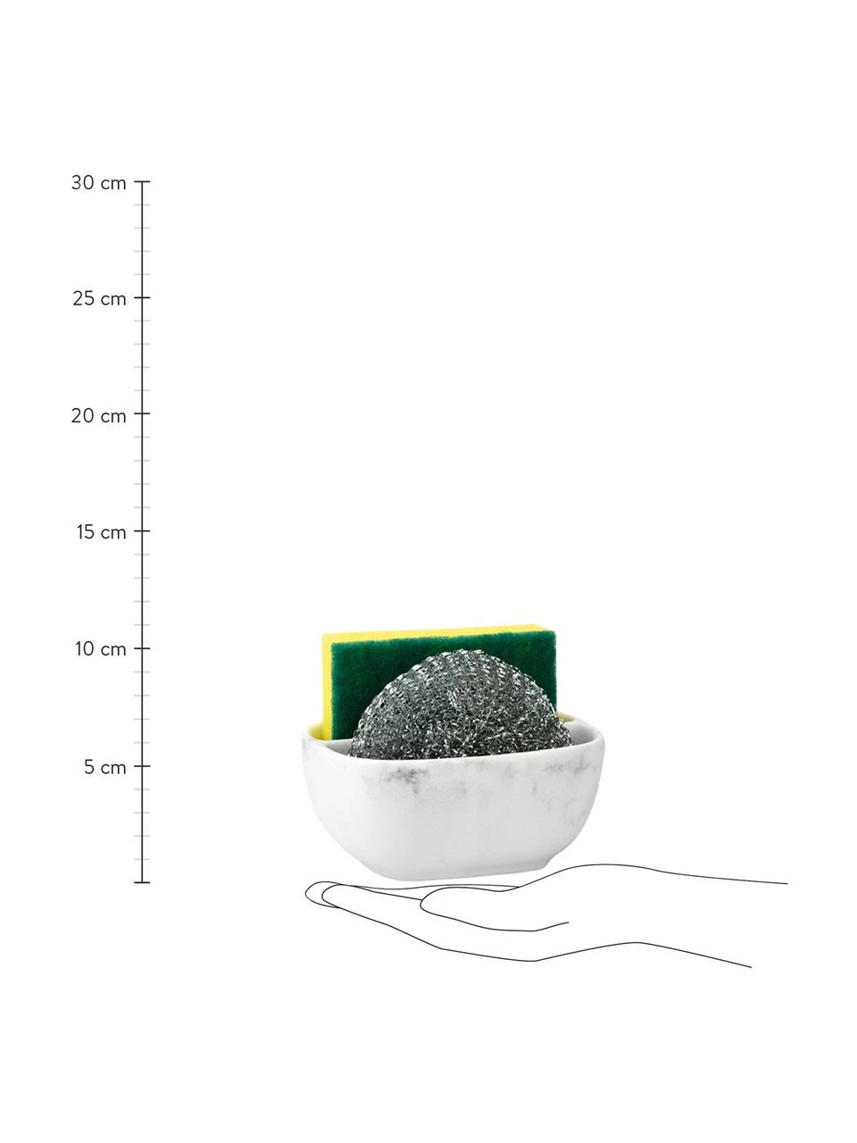 – 3-tlg. Set bestehend aus einem Schwammhalter in Marmor-Optik, einem Metallschwamm und einem Küchenschwamm