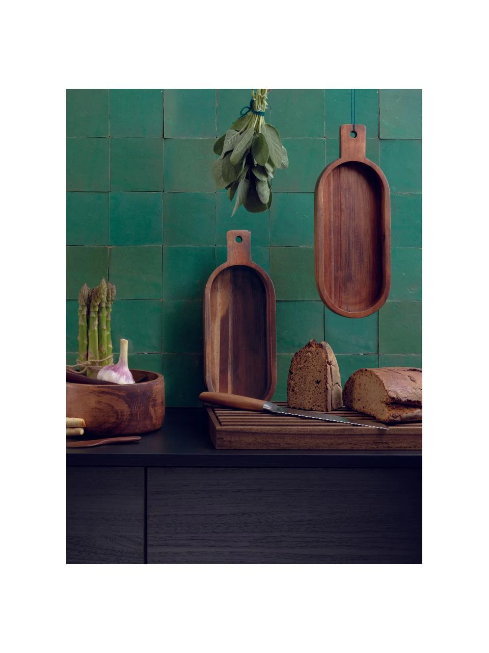 Schneidebrett mit praktischen Rillen zum Servieren und Schneiden von Brot und Baguette.