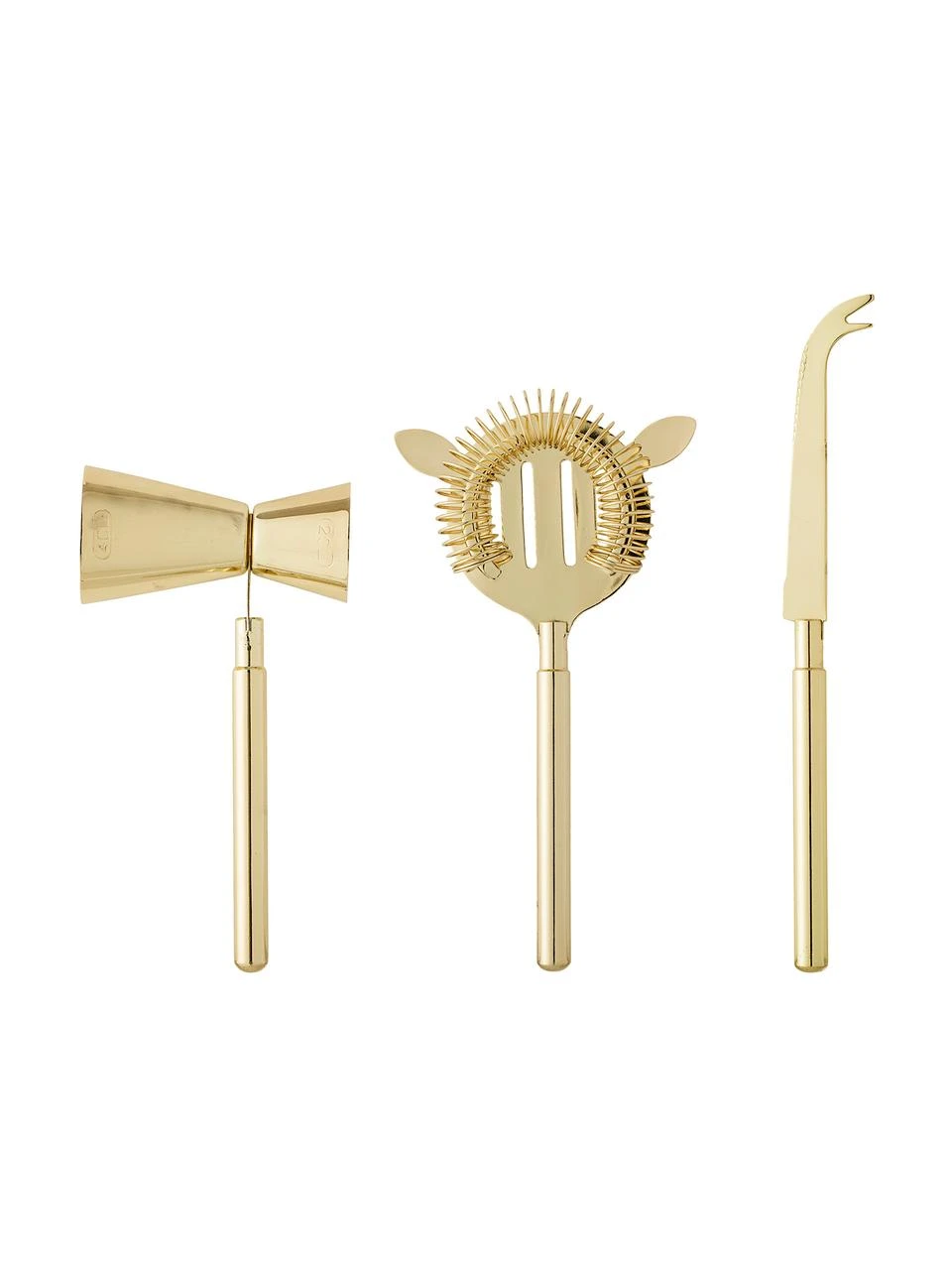 3-tlg. Cocktail-Set bestehend aus einem Barsieb, einem Messbecher und einem Fruchtmesser