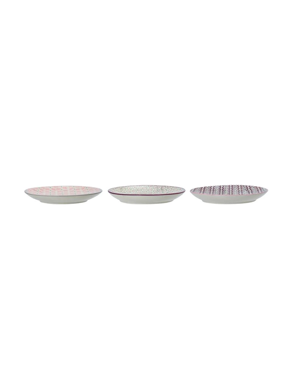 3 Frühstücksteller mit erhabenen Punkten in unterschiedlichen Farben und Designs