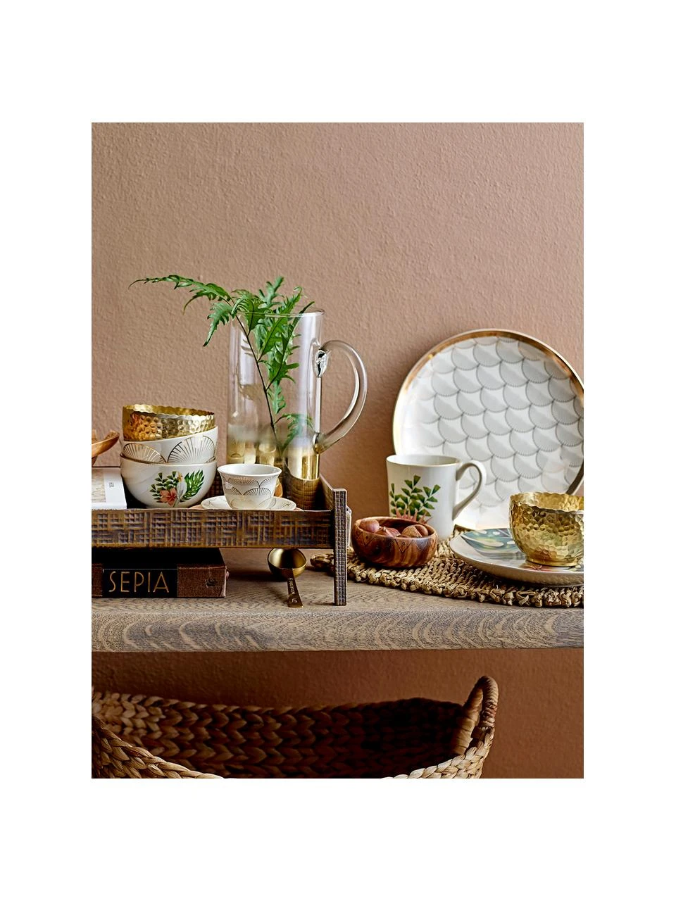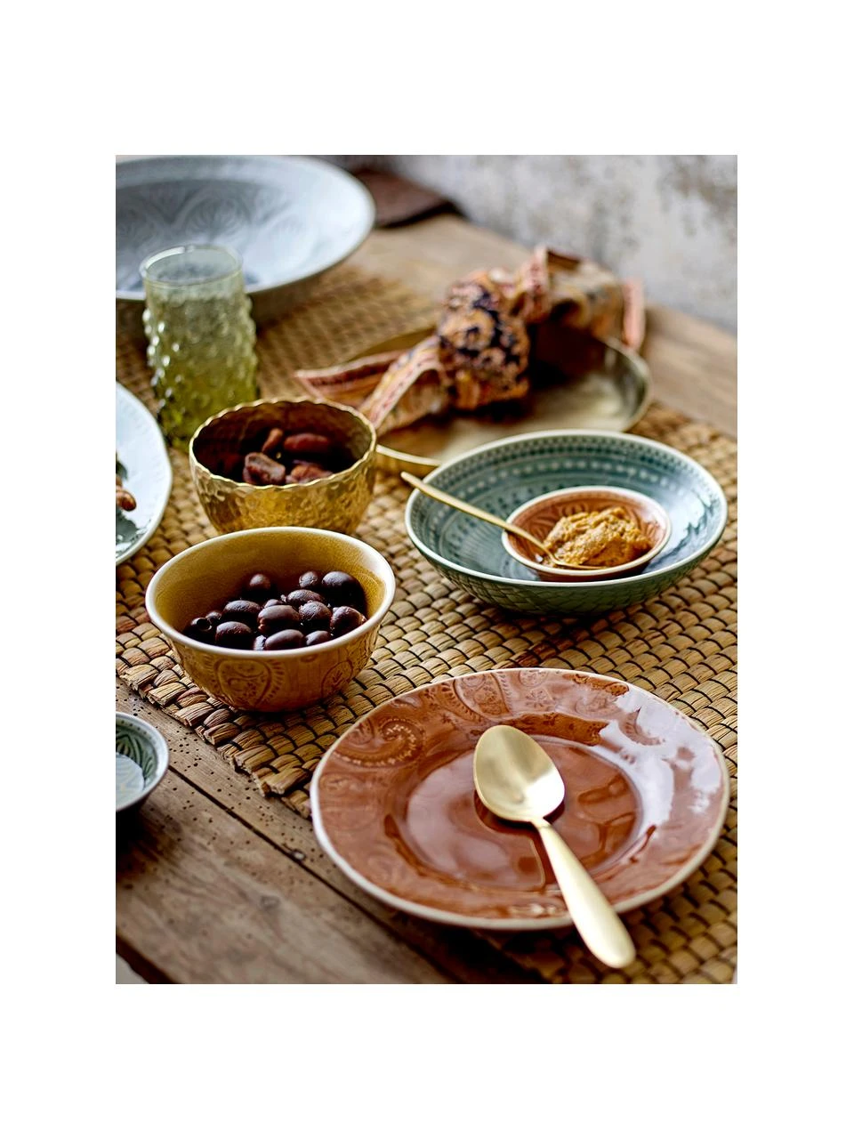 Westwing Collection Porzellan Geschirr-Set Sali mit goldenem Rand und Relief, 4 Personen (12-tlg.)