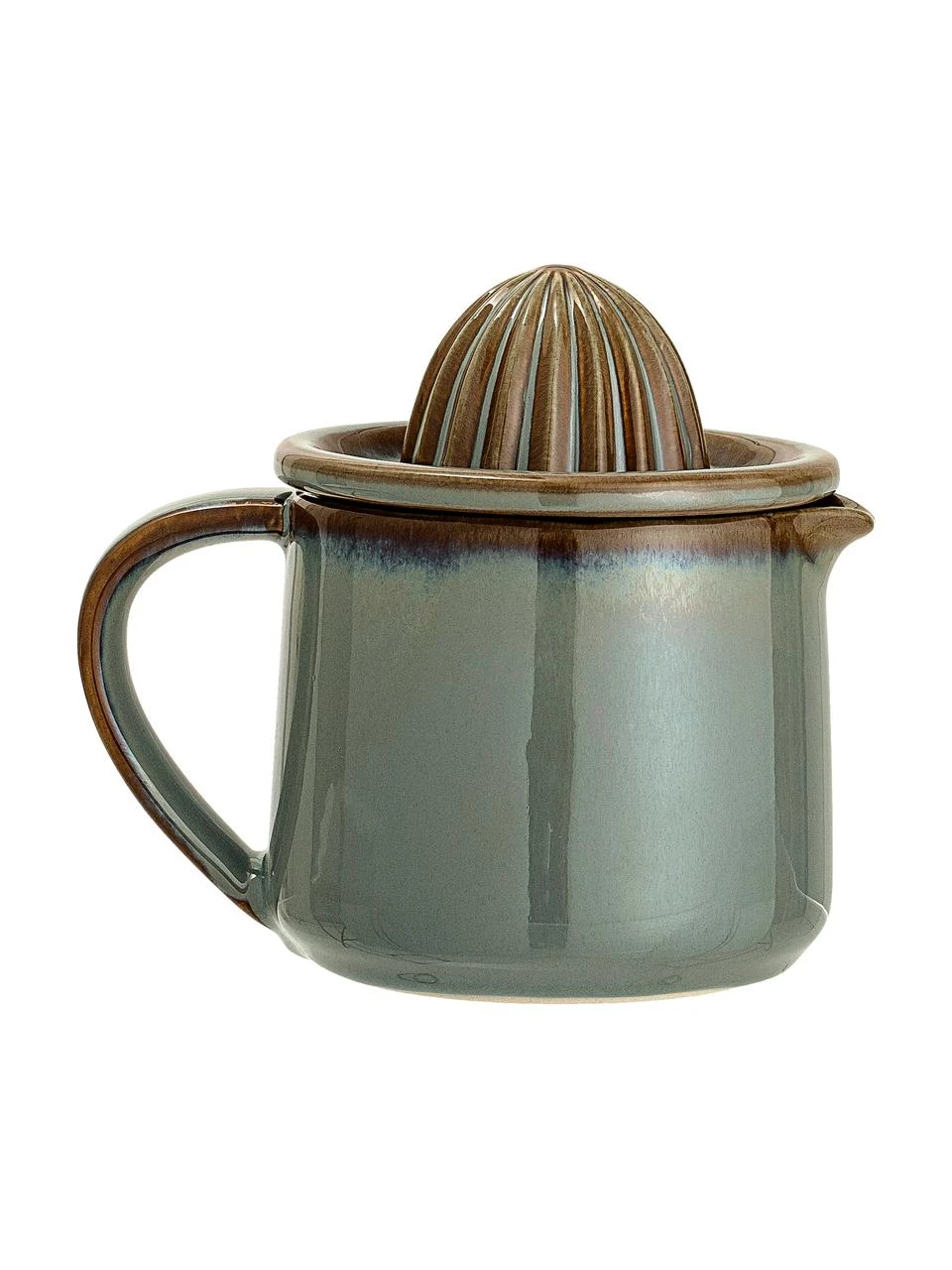 2-tlg. Zitruspressen-Set mit handgefertigter Glasur bestehend aus einer Zitruspresse und einem passenden Auffangbehälter