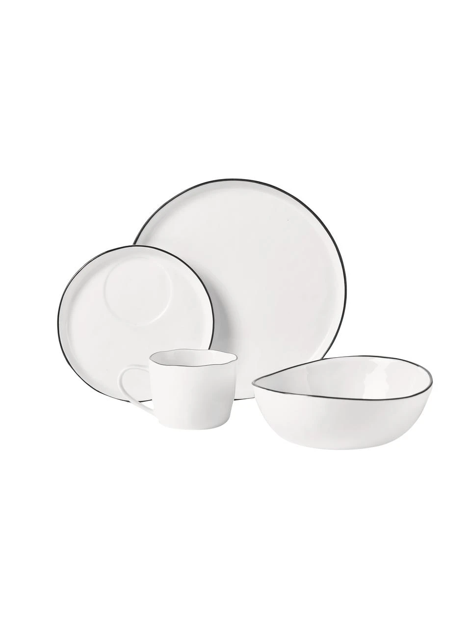 – Bestehend aus 4 Frühstückstellern, 4 Schalen und 4 Tassen mit Untertassen