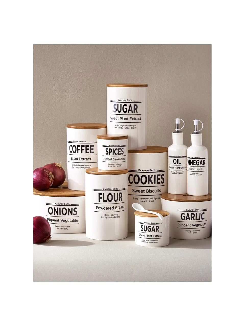 Ladelle Essig- und Öl-Spender Essentials aus Porzellan und Akazienholz, 2er-Set, Ø 6 x H 18 cm