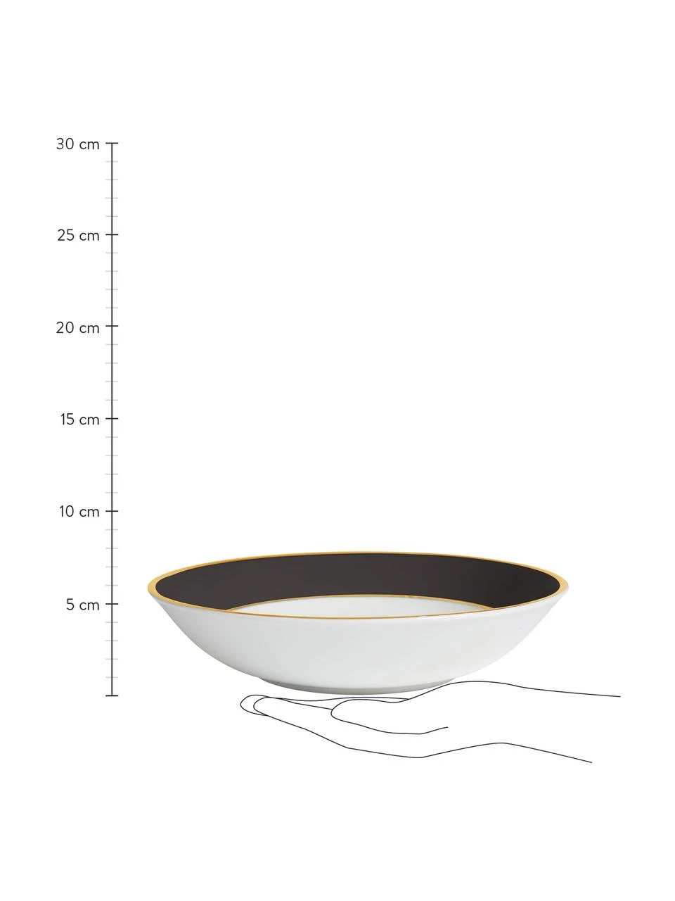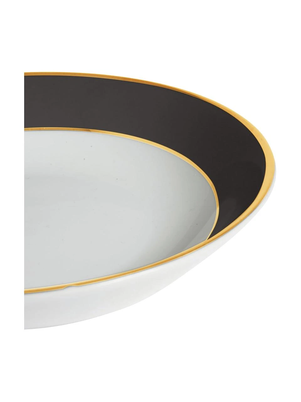 – 6 Porzellan-Suppenteller mit goldfarbenem Rand