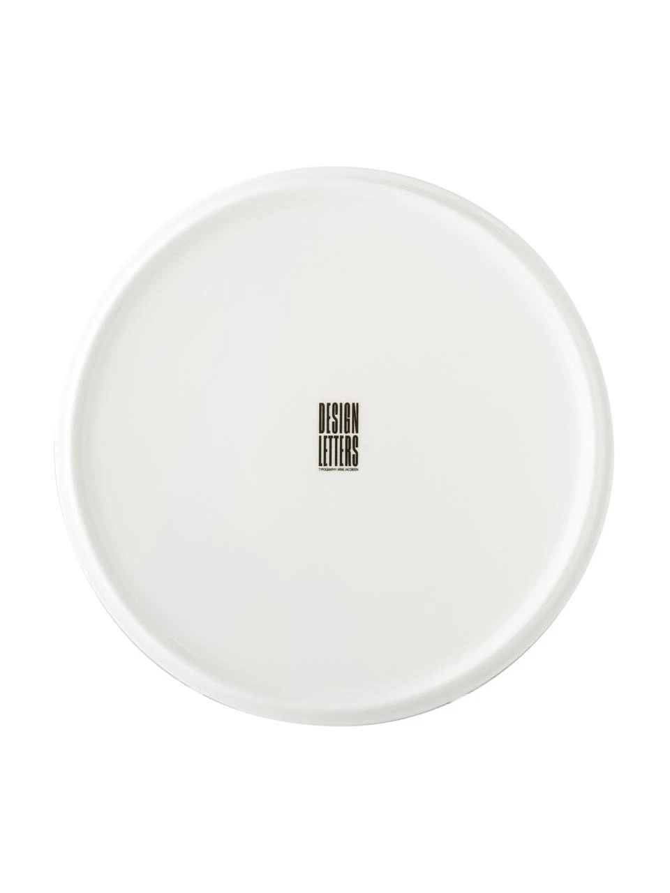 Teller, bedruckt mit einem Buchstaben aus dem 1937 von Arne Jacobsen für das Rathaus im dänischen Aarhus gestalteten ABC.