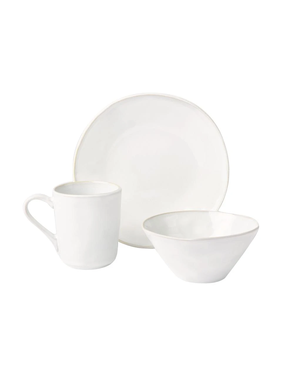 Diese Geschirrkombination eignet sich perfekt als ein komplettes Frühstücksset mit Frühstückstellern, Schalen und Tassen.