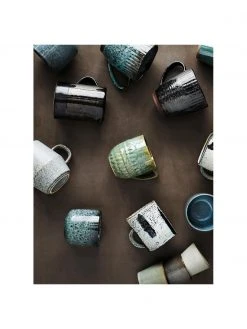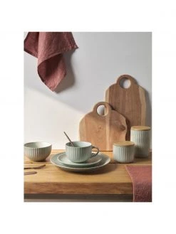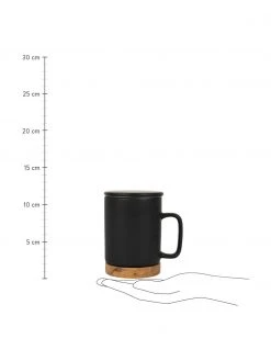 Sema Steingut-Tasse Nordika mit Deckel und Sieb, Sockel aus Akazienholz, Ø 9 x H 12 cm, 370 ml