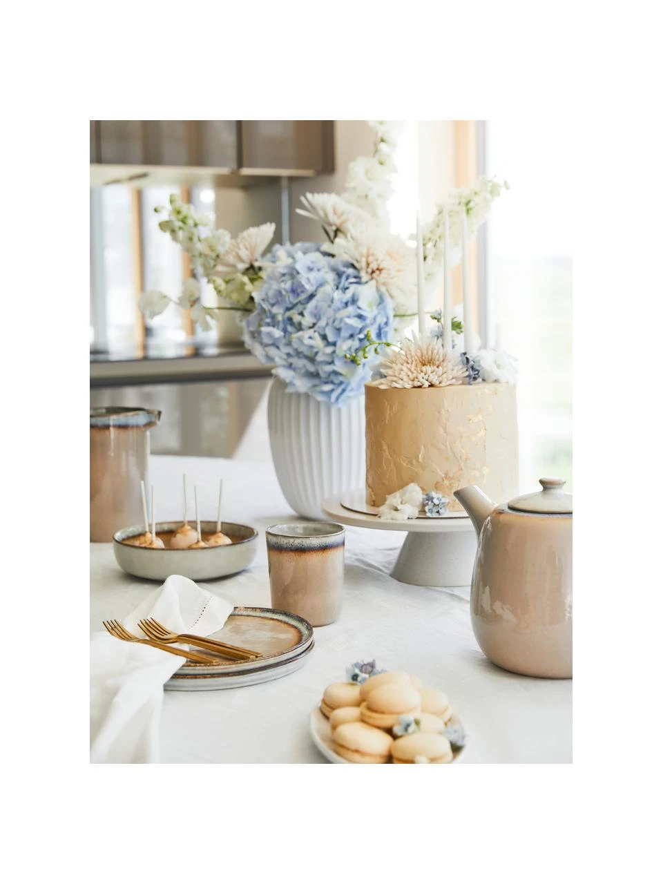 Westwing Collection Porzellan Frühstücks-Set Sali mit goldenem Rand und Relief, 4 Personen (12-tlg.)