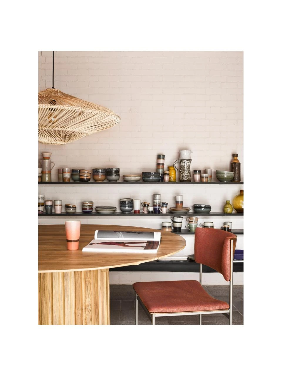 Die Geschirrserie überzeugt mit ihrem besonderen, von den 70er Jahren inspirierten Design. Die verspielten Farbkombinationen machen den Retro-Look perfekt. Durch die sorgfältige Herstellung in Handarbeit ist jedes Produkt der 70’s Kollektion ein Unikat. Gewollte Farb- und Formabweichungen unterstreichen den besonderen Charme der Geschirrserie.