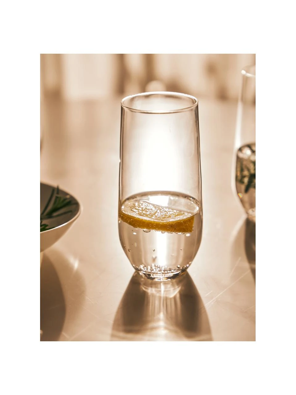 Neben Wasser und Softdrinks ist das schlanke, hohe Glas der Favorit auch für Longdrinks.
