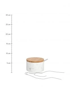 Bloomingville Steingut Zuckerdose Pixie mit Holzlöffel, Ø 8 x H 6 cm