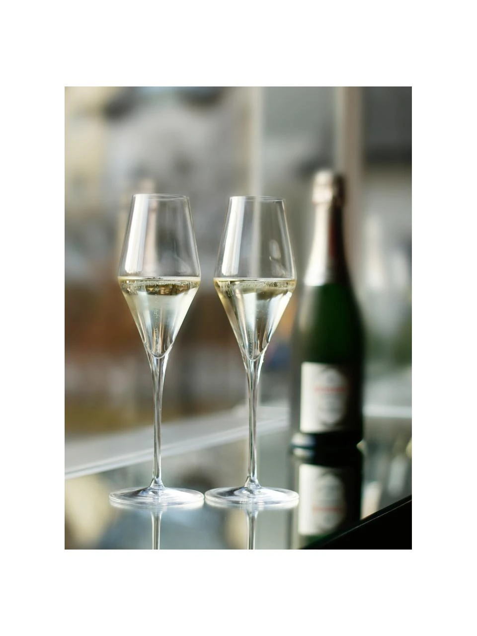 Dieses Champagnerkelchglas mit dem fließenden Übergang vom Kelch zum Stiel ist genau das richtige Glas für besondere Momente.