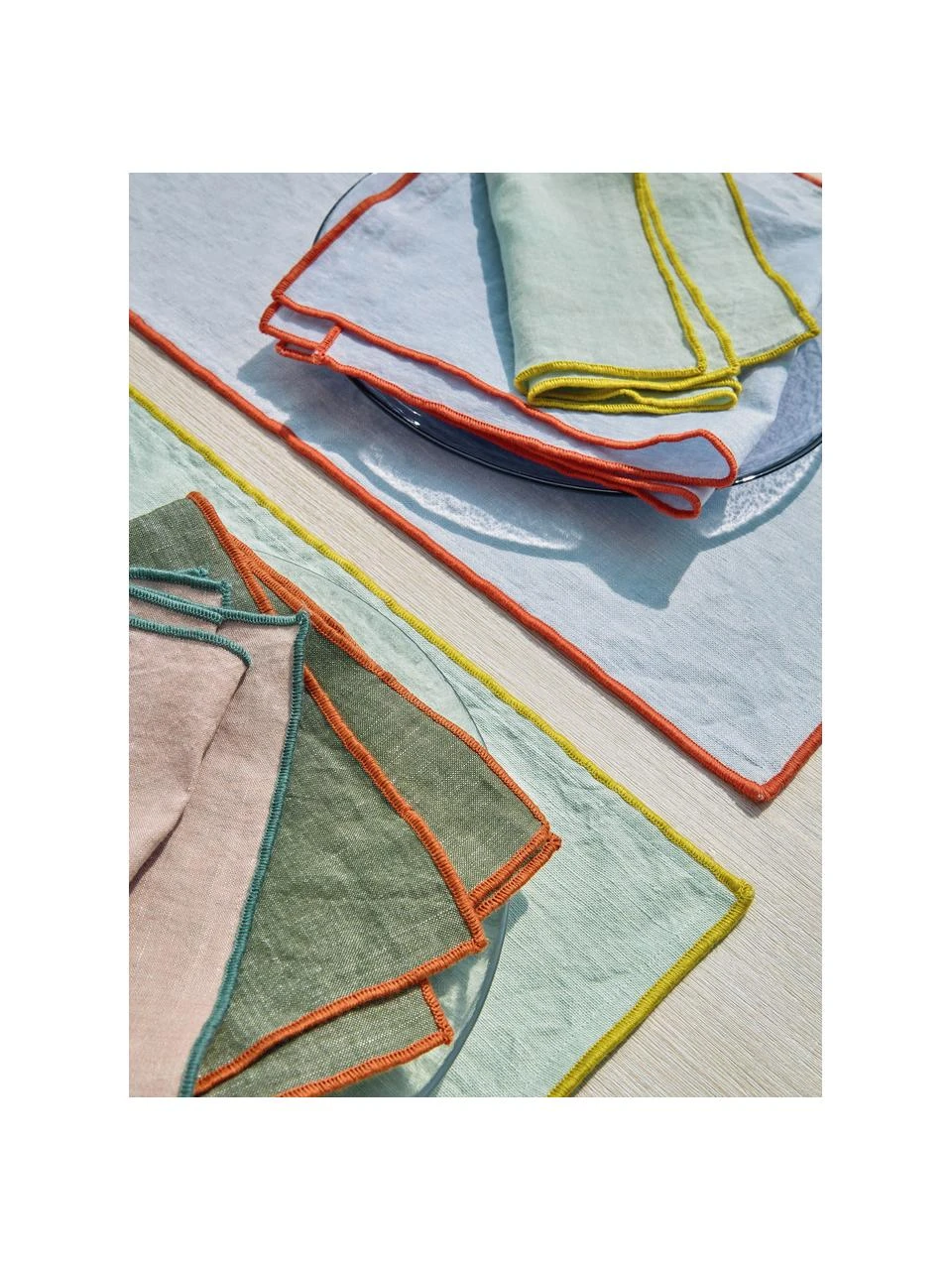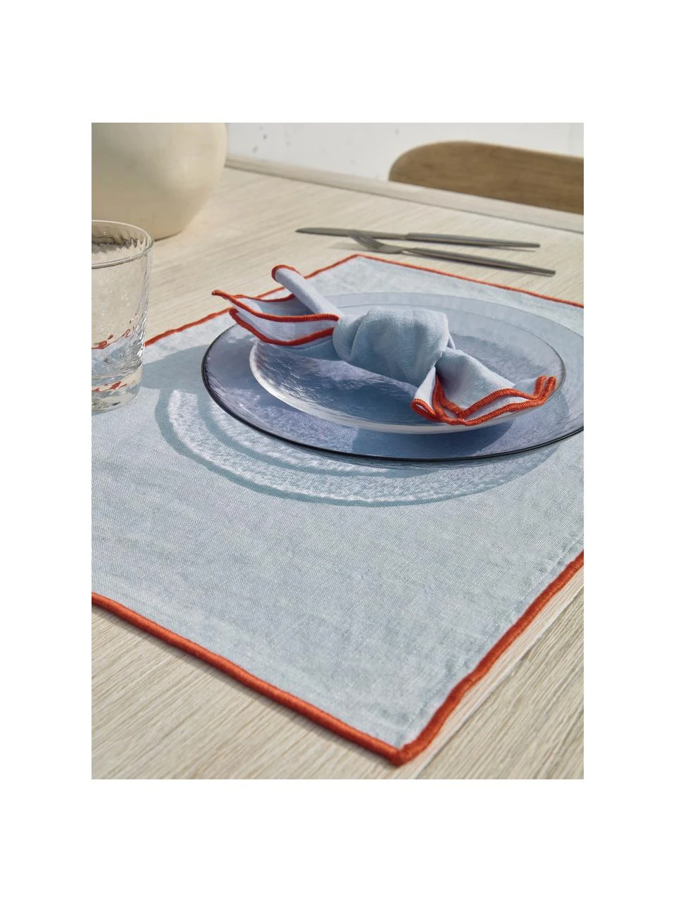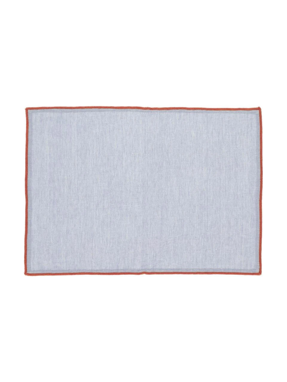– 2 Tischsets mit orangefarbener Umrandung bestehend aus einem Baumwoll-Leinen Mix