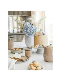 Broste Copenhagen Handgemachte Steingut-Becher Nordic Vanilla in Cremeweiß gesprenkelt, 6 Stück, Ø 8 x H 10 cm, 250 ml