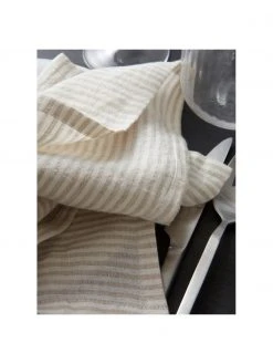 Jotex Gestreifte Leinen-Tischdecke Alina in Beige/Cremeweiß, Für 4 – 6 Personen (B 145 x L 200 cm)