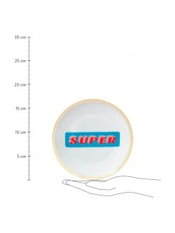 Bitossi Home Porzellan-Frühstücksteller Super mit Aufschrift und Goldrand, Ø 17 cm