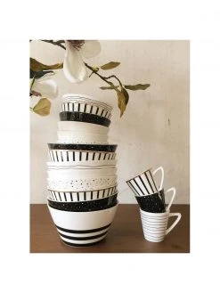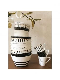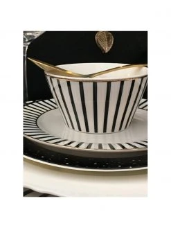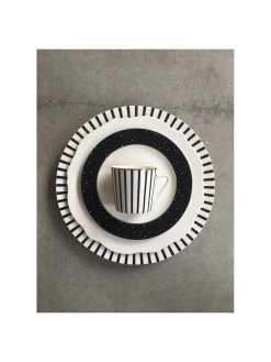 Dutch Rose Frühstücksteller Ceres Loft mit Streifendekor in Schwarz/Weiß, 4 Stück, Ø 21 x H 2 cm