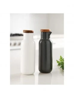 Ladelle Essig- und Öl-Spender Essentials aus Porzellan und Akazienholz, 2er-Set, Ø 6 x H 18 cm