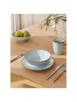 Westwing Collection Handgemachte Steingut-Suppenteller Thalia in Blaugrau, 2 Stück, Ø 22 x H 6 cm