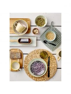 Bloomingville Handbemalte Steingut Servierplatte Patrizia mit verspieltem Muster, B 36 x H 4 cm