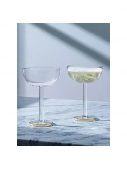 Lsa International Mundgeblasene Champagnerschalen Luca mit Goldrand, 2 Stück, Ø 11 x H 15 cm, 200 ml