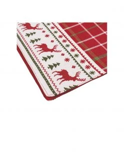 Villa D’Este Home Tivoli Baumwoll-Tischläufer Tartan Reindeer mit Weihnachtsmuster, B 33 x L 178 cm