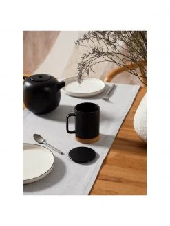 Sema Steingut-Tasse Nordika mit Deckel und Sieb, Sockel aus Akazienholz, Ø 9 x H 12 cm, 370 ml