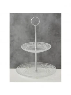 Etagere Relief aus Glas mit silbernem Gestell, Ø 25 cm, Ø 25 x H 35 cm