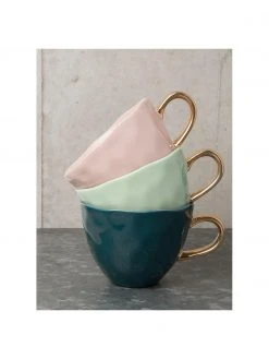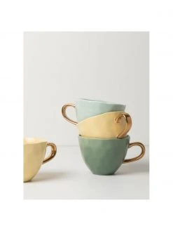 Urban Nature Culture Tasse Good Morning in Dunkelgrün mit goldenem Griff, Ø 11 x H 8 cm, 350 ml