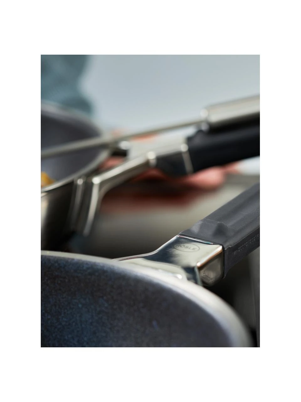 – Pfannengriff liegt dank Silikonummantelung sicher in der Hand