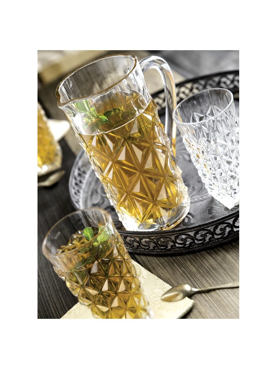 Krug aus Kristallglas mit dekorativem Relief