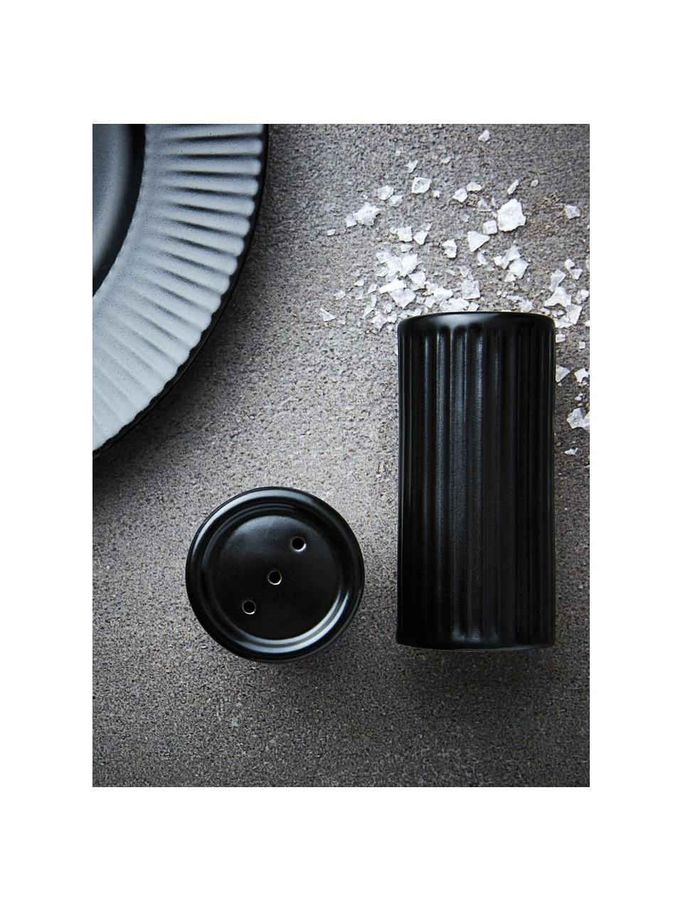 2-tlg. Set bestehend aus einem Salzstreuer und einem Pfefferstreuer mit Rillenstruktur