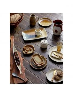 Broste Copenhagen Handgemachte Servierplatte Nordic Sand aus Steingut, L 30 x B 17 cm