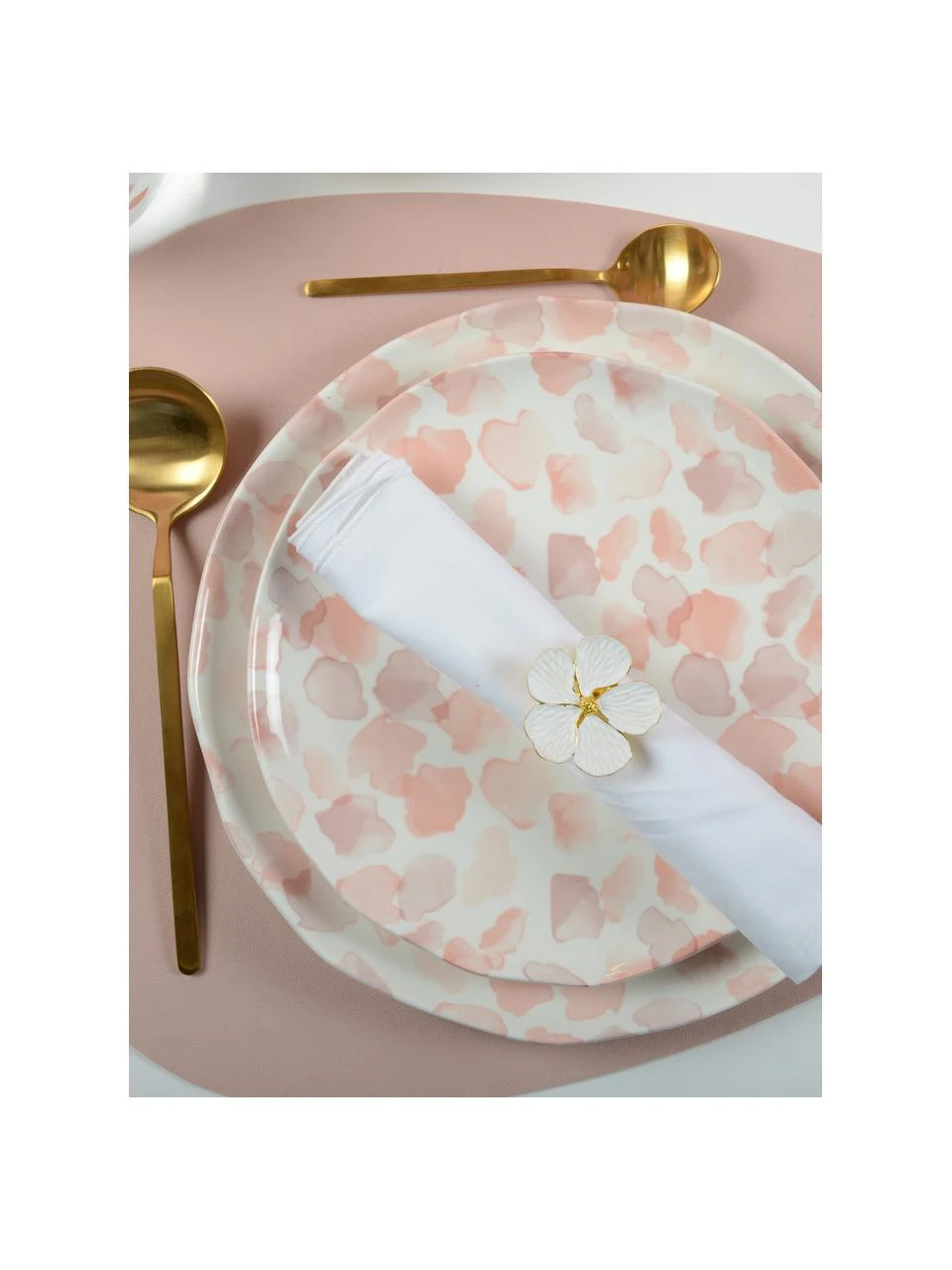 – 4 goldfarbene Serviettenringe mit weißen Blüten