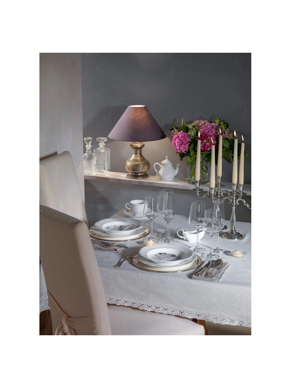 Westwing Collection Porzellan Geschirr-Set Sali mit goldenem Rand und Relief, 4 Personen (12-tlg.)