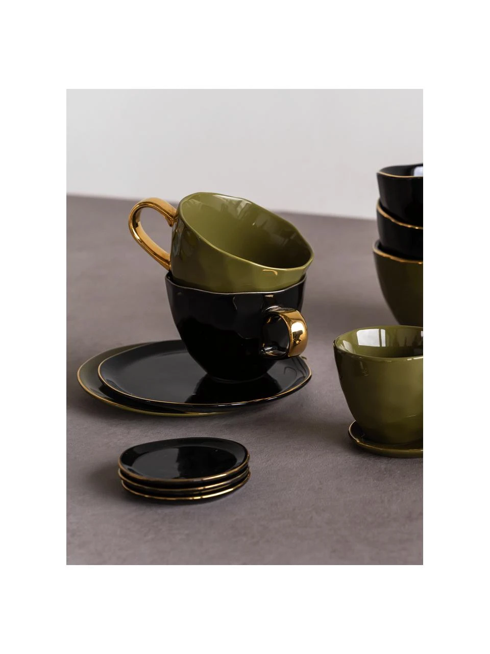 Westwing Collection Porzellan Geschirr-Set Sali mit goldenem Rand und Relief, 4 Personen (12-tlg.)