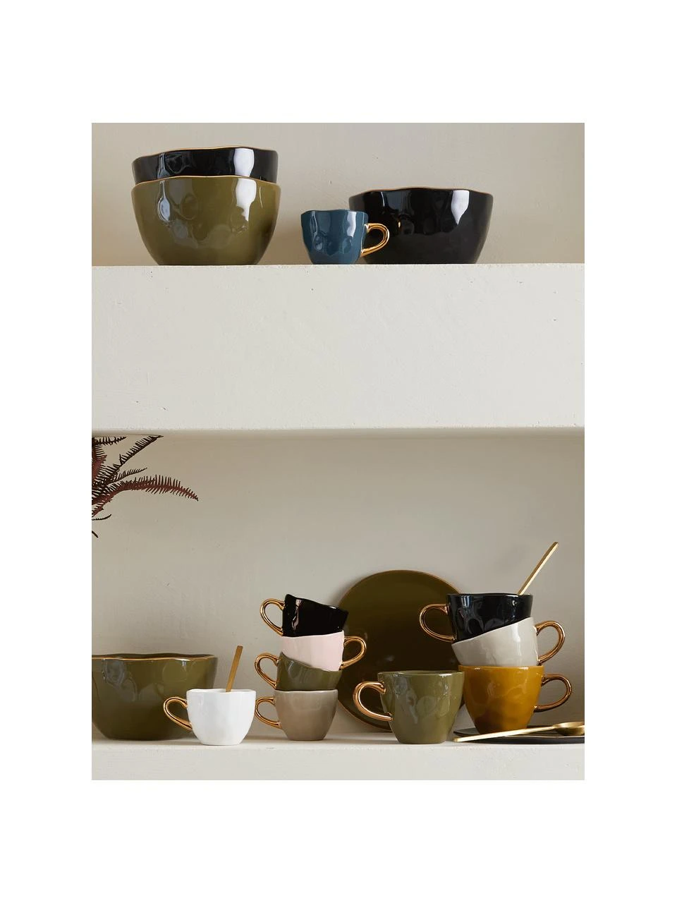 Westwing Collection Porzellan Geschirr-Set Sali mit goldenem Rand und Relief, 4 Personen (12-tlg.)