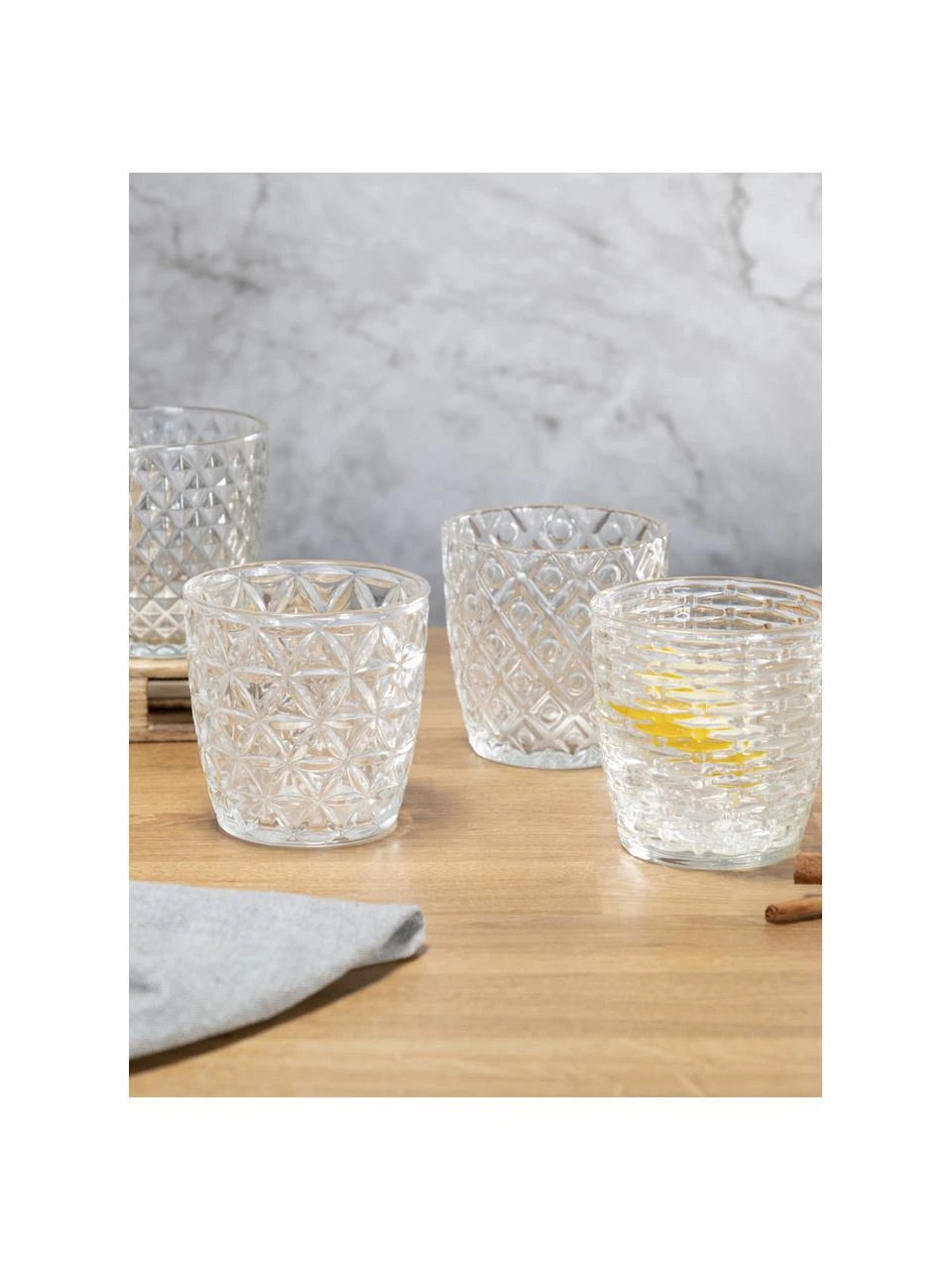 Westwing Collection Longdrinkgläser George mit Kristallrelief, 4 Stück, Ø 8 x H 15 cm, 380 ml