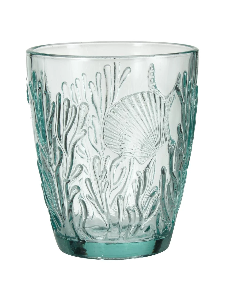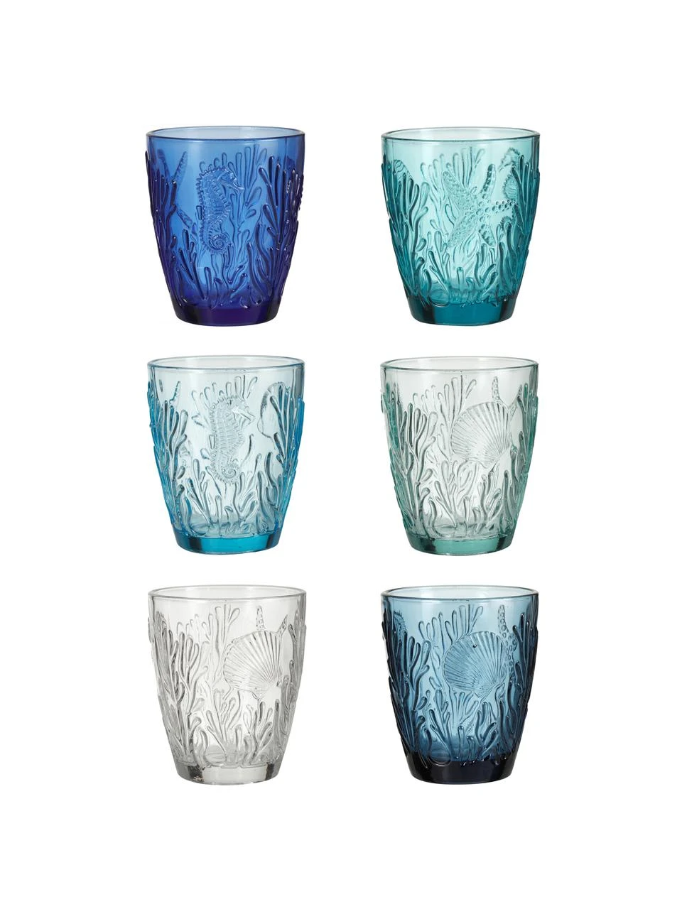 6 Wassergläser in unterschiedlichen Farben mit Strukturmuster
