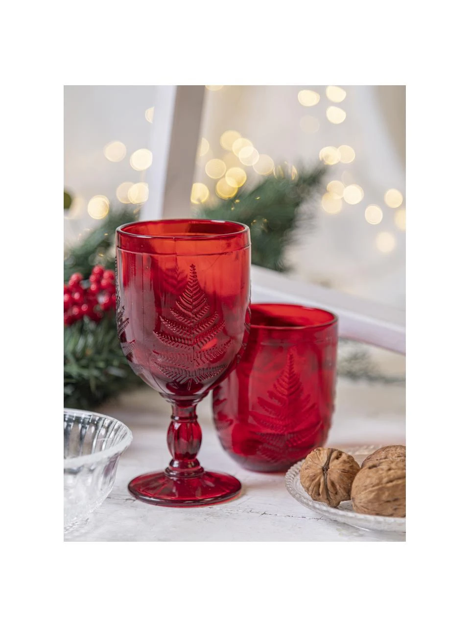 – 6 Weingläser mit Weihnachtsbaum-Muster