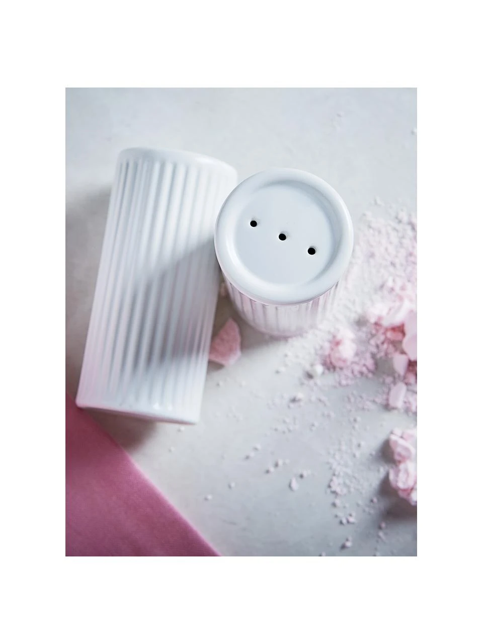 2-tlg. Set bestehend aus einem Salzstreuer und einem Pfefferstreuer mit Rillenstruktur