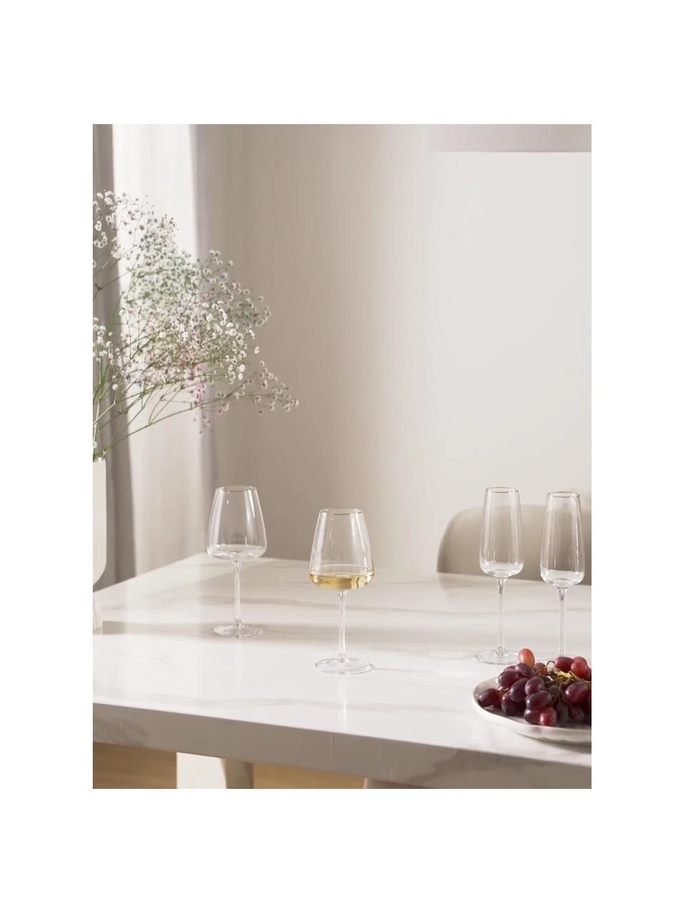 Klares, mundgeblasenes Glas und weiche Kurven: Unsere Ellery Kollektion ist schlichte Eleganz – diese Gläser sind ein absolutes Must-have für jeden Tisch.