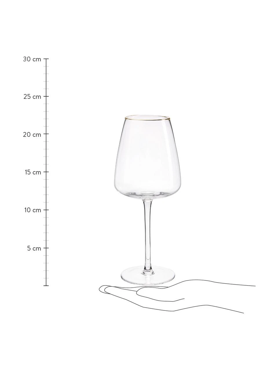 – 4 mundgeblasene Weißweingläser mit goldfarbenem Rand