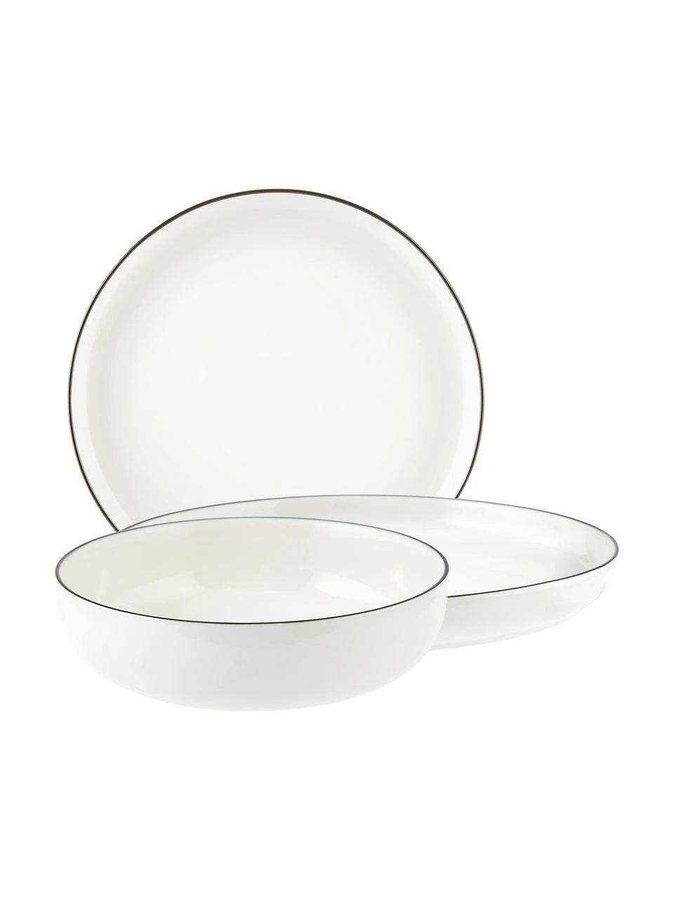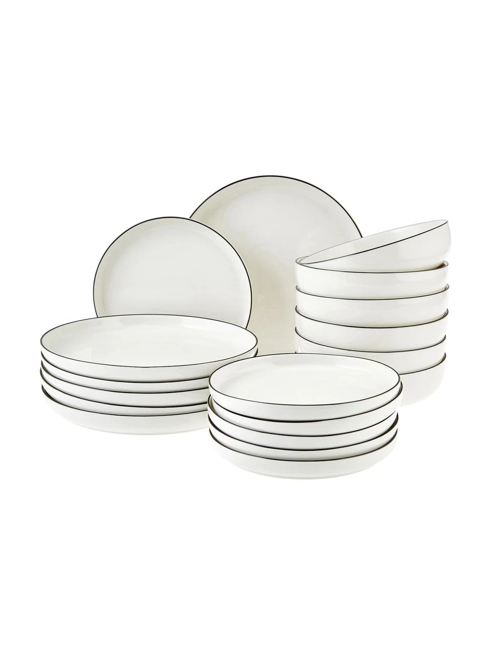 – 18-tlg. Geschirr-Set mit schwarzem Rand