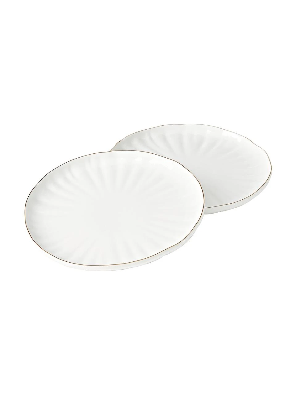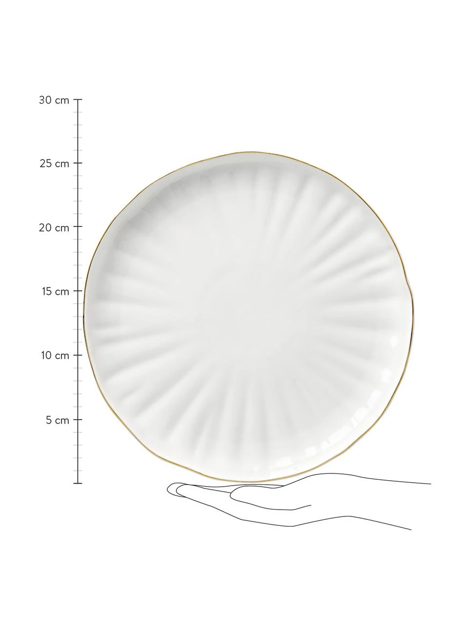Westwing Collection Porzellan Geschirr-Set Sali mit goldenem Rand und Relief, 4 Personen (12-tlg.)
