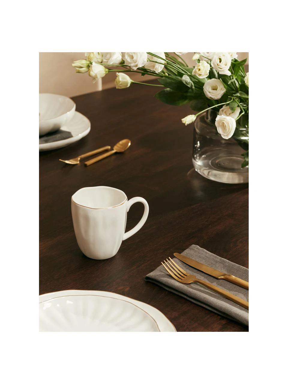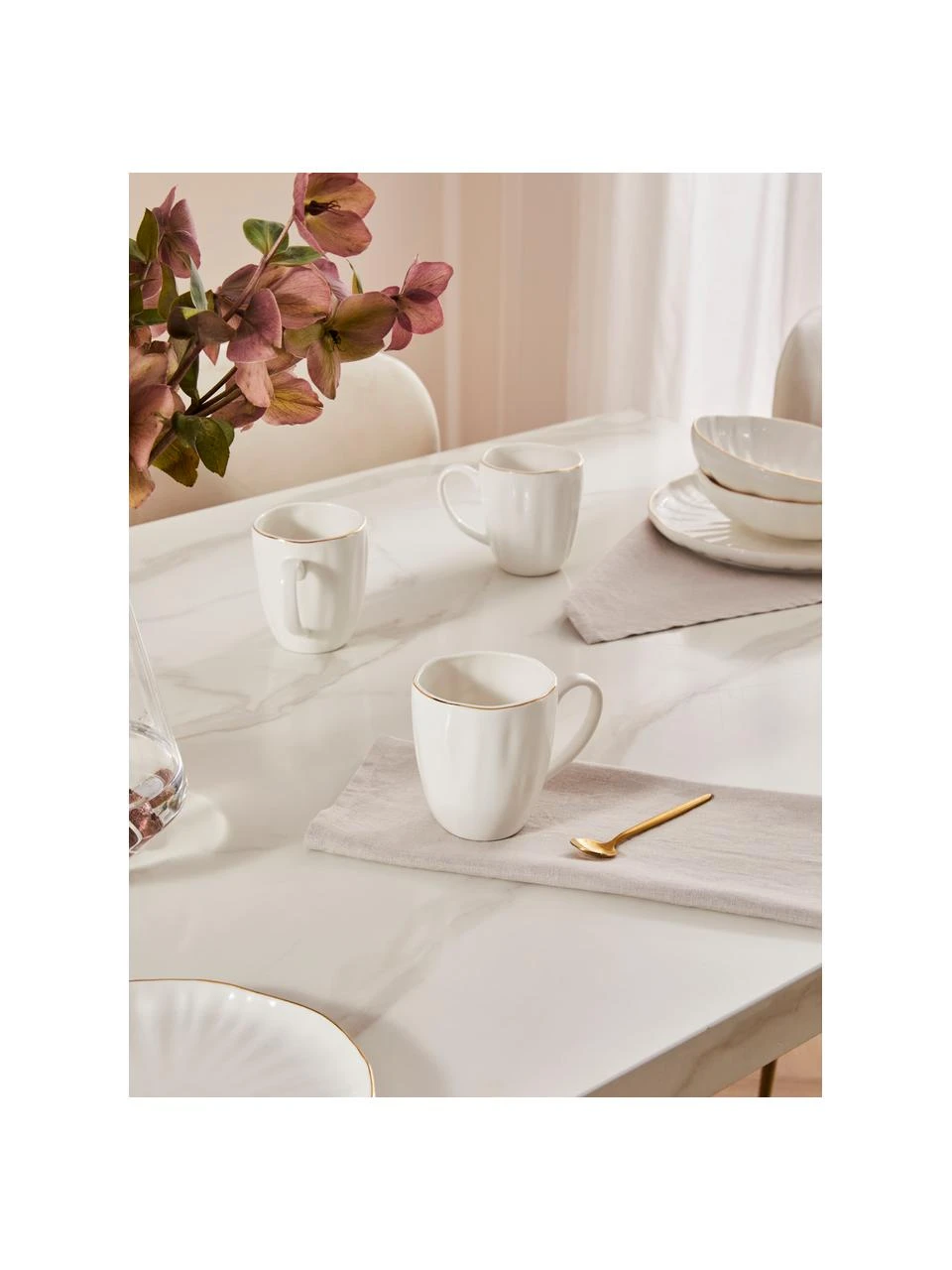 – 2 Tassen mit Struktur und goldenem Rand